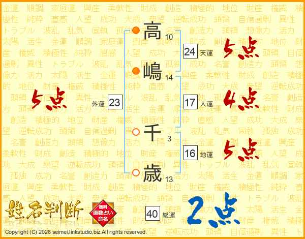高嶋千歳さんの総運は40画の2点!