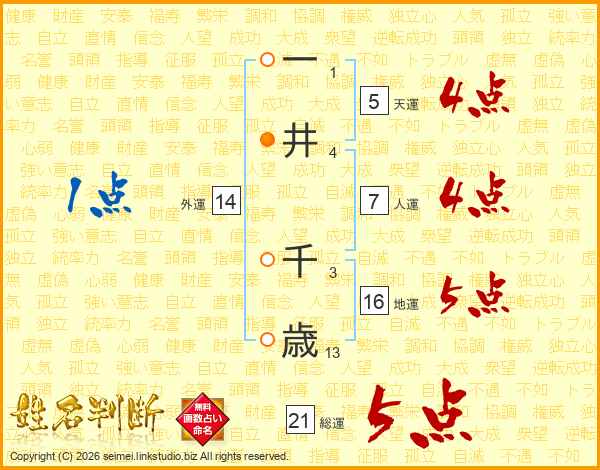 一井千歳さんの総運は21画の5点!