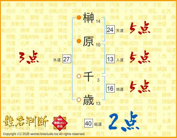 榊原千歳さんの人運は13画の5点!