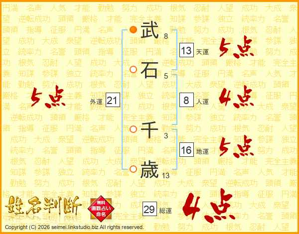 武(8画)石(5画) 千(3画)歳(13画)