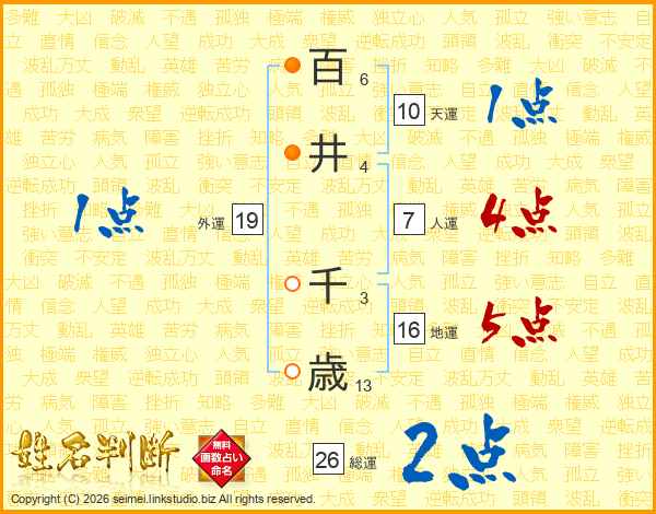 百井千歳さんの総運は26画の2点!
