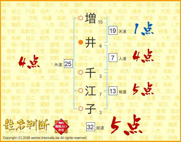増井千江子さんの総運は32画の5点!