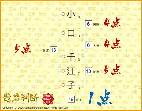 小(3画)口(3画) 千(3画)江(7画)子(3画)