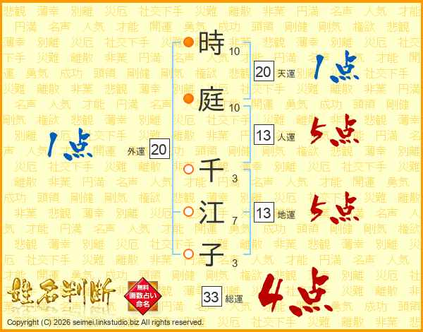 時庭千江子さんの総運は33画の4点!