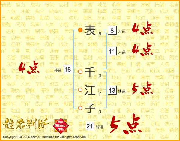 表千江子さんの外運は18画の4点!