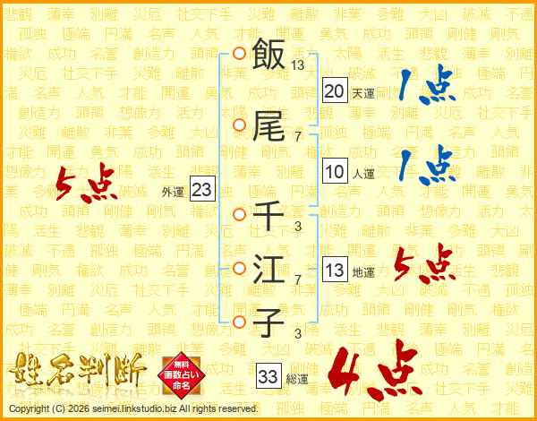 飯尾千江子さんの総運は33画の4点!