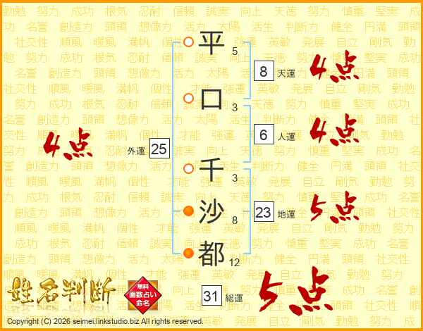 平口千沙都さんの総運は31画の5点!