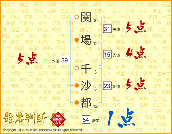 関場千沙都さんの外運は39画の5点!