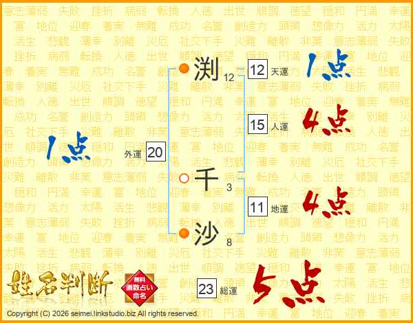 渕千沙さんの総運は23画の5点!