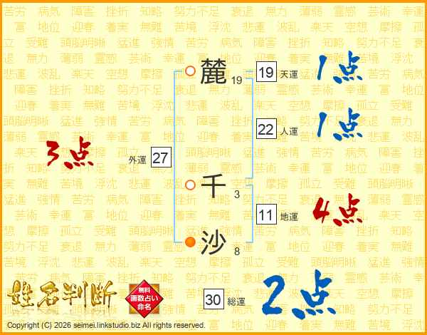 麓千沙さんの天運は19画の1点!