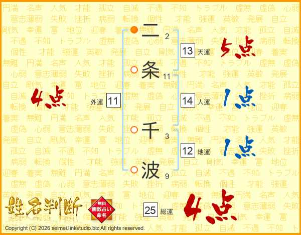 二条千波さんの総運は25画の4点!