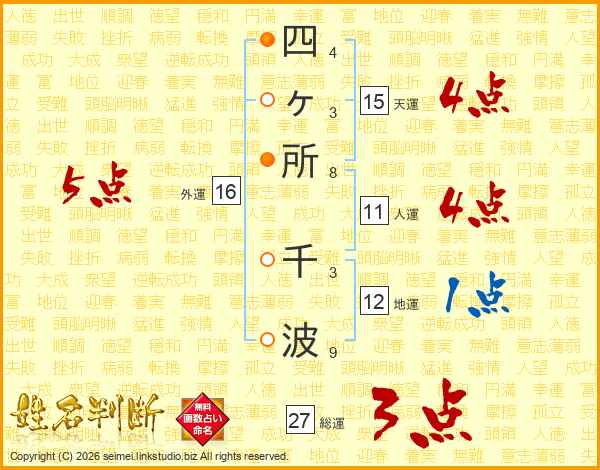 四ヶ所千波さんの総運は27画の3点!