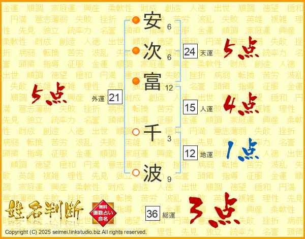 安次富千波さんの総運は36画の3点!