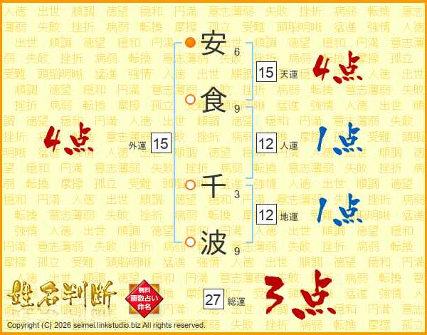 安食千波さんの総運は27画の3点!