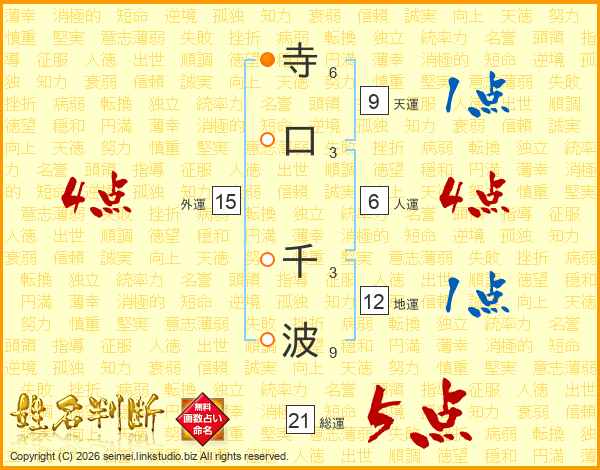 寺口千波さんの総運は21画の5点!