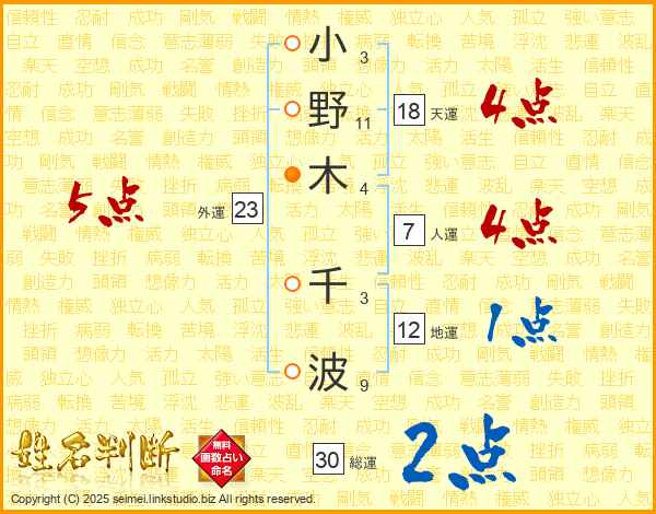 小(3画)野(11画)木(4画) 千(3画)波(9画)
