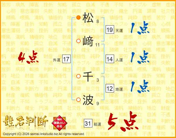 松﨑千波さんの総運は31画の5点!