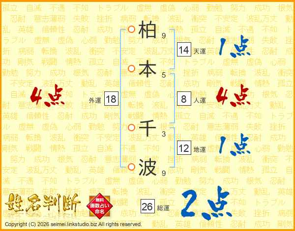 柏本千波さんの総運は26画の2点!