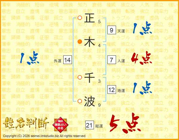 正木千波さんの総運は21画の5点!