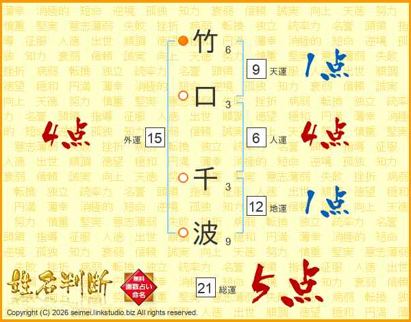 竹口千波さんの総運は21画の5点!