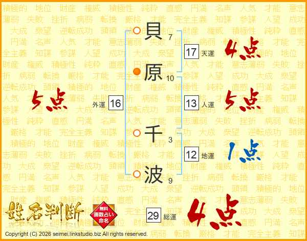 貝原千波さんの総運は29画の4点!