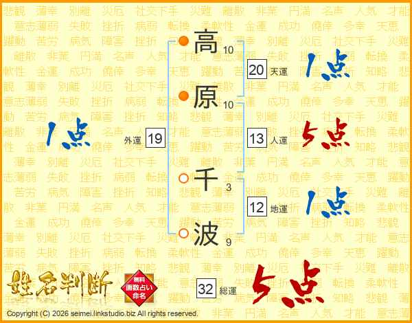 高原千波さんの総運は32画の5点!