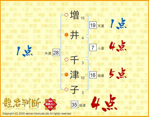 増(15画)井(4画) 千(3画)津(10画)子(3画)