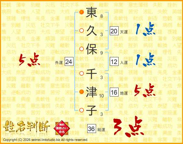 東久保千津子さんの外運は24画の5点!