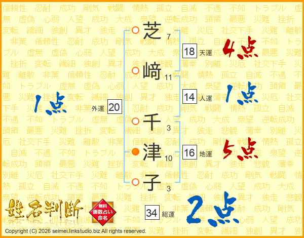 芝(7画)﨑(11画) 千(3画)津(10画)子(3画)