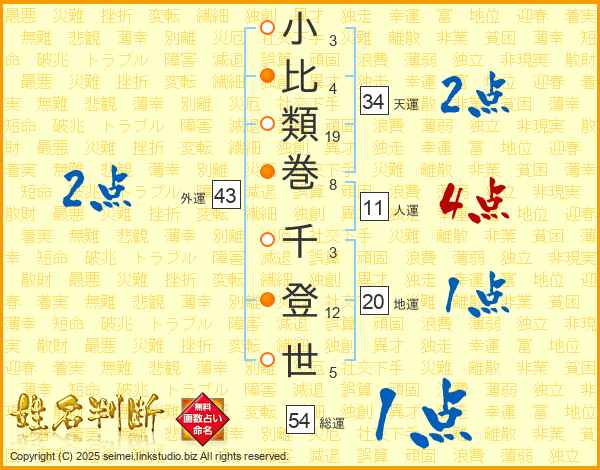 小(3画)比(4画)類(19画)巻(8画) 千(3画)登(12画)世(5画)