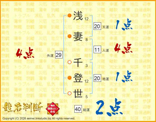 浅妻千登世さんの総運は40画の2点!