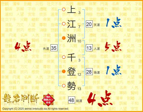 上江洲千登勢さんの外運は35画の4点!