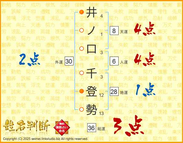 井ノ口千登勢さんの総運は36画の3点!