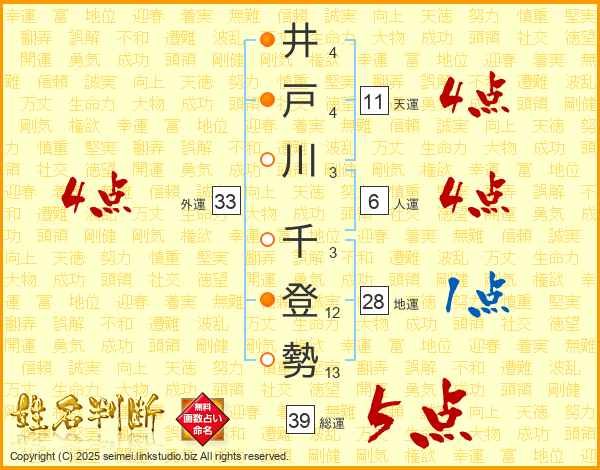 井戸川千登勢さんの天運は11画の4点!