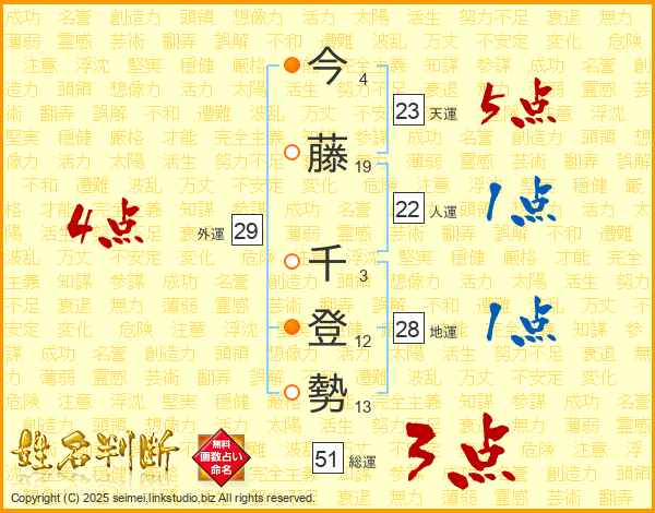 今藤千登勢さんの総運は51画の3点!