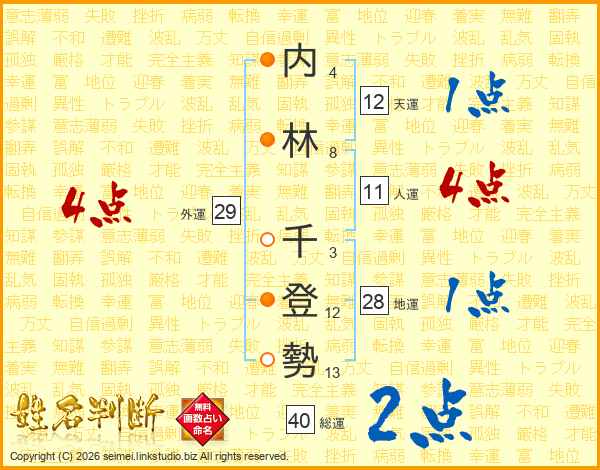 内林千登勢さんの総運は40画の2点!