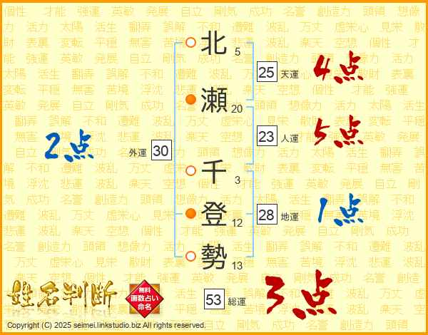 北瀬千登勢さんの天運は25画の4点!