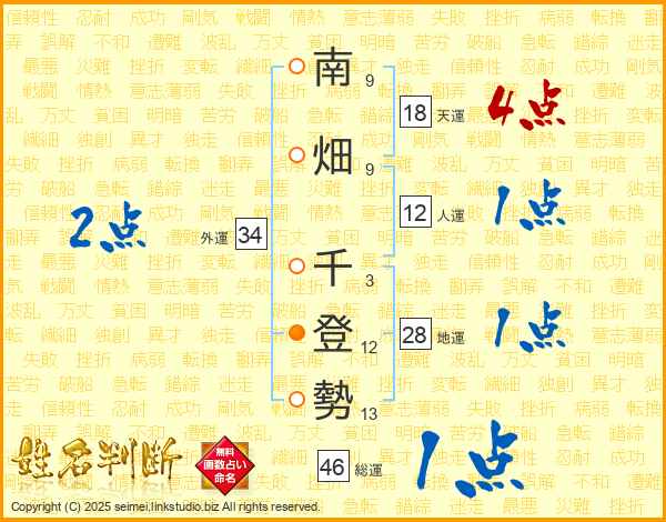 南(9画)畑(9画) 千(3画)登(12画)勢(13画)
