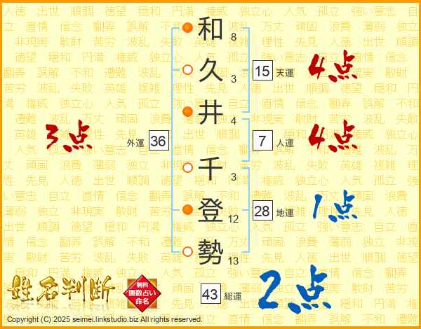 和久井千登勢さんの外運は36画の3点!