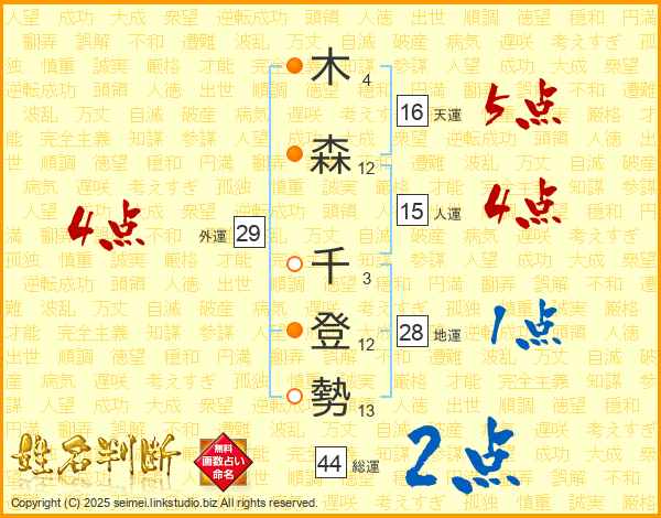 木森千登勢さんの総運は44画の2点!