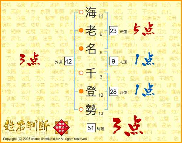 海老名千登勢さんの総運は51画の3点!