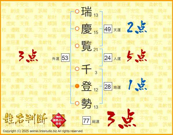 瑞(13画)慶(15画)覧(21画) 千(3画)登(12画)勢(13画)