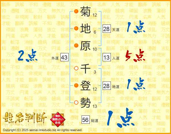 菊地原千登勢さんの総運は56画の1点!