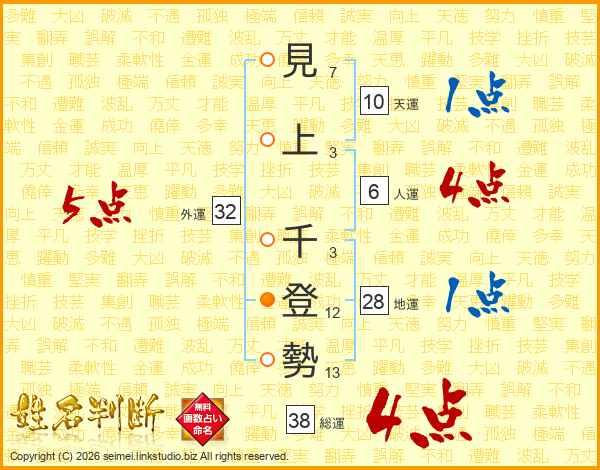 見上千登勢さんの総運は38画の4点!