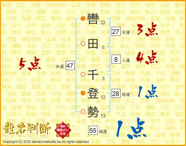 轡田千登勢さんの地運は28画の1点!