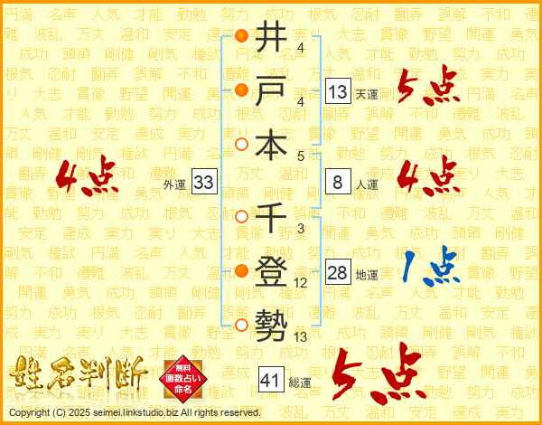 井戸本千登勢さんの総運は41画の5点!