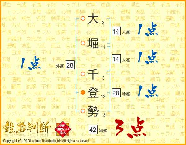 大堀千登勢さんの天運は14画の1点!