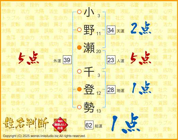 小野瀬千登勢さんの外運は39画の5点!
