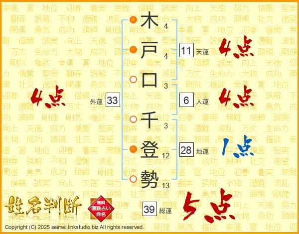 木(4画)戸(4画)口(3画) 千(3画)登(12画)勢(13画)