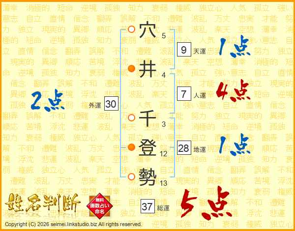 穴井千登勢さんの総運は37画の5点!